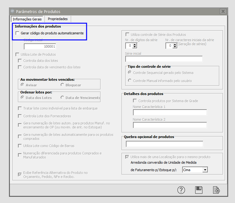 Manutenção → Empresas → Parâmetros do Produto e desabilitar o seguinte checkbox conforme o print
