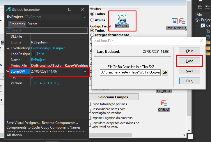 No formulário (Delphi), dê F11 no componente RvProject e na propriedade "StoreRav" realize o load.