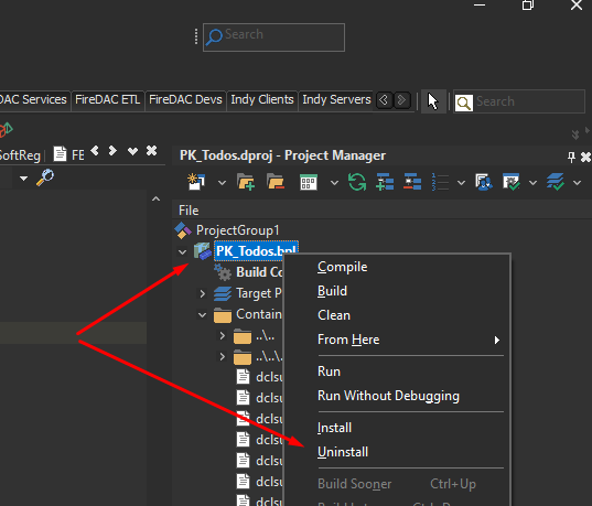 Para instalar, faça a sequencia Build -> Compile -> Install.