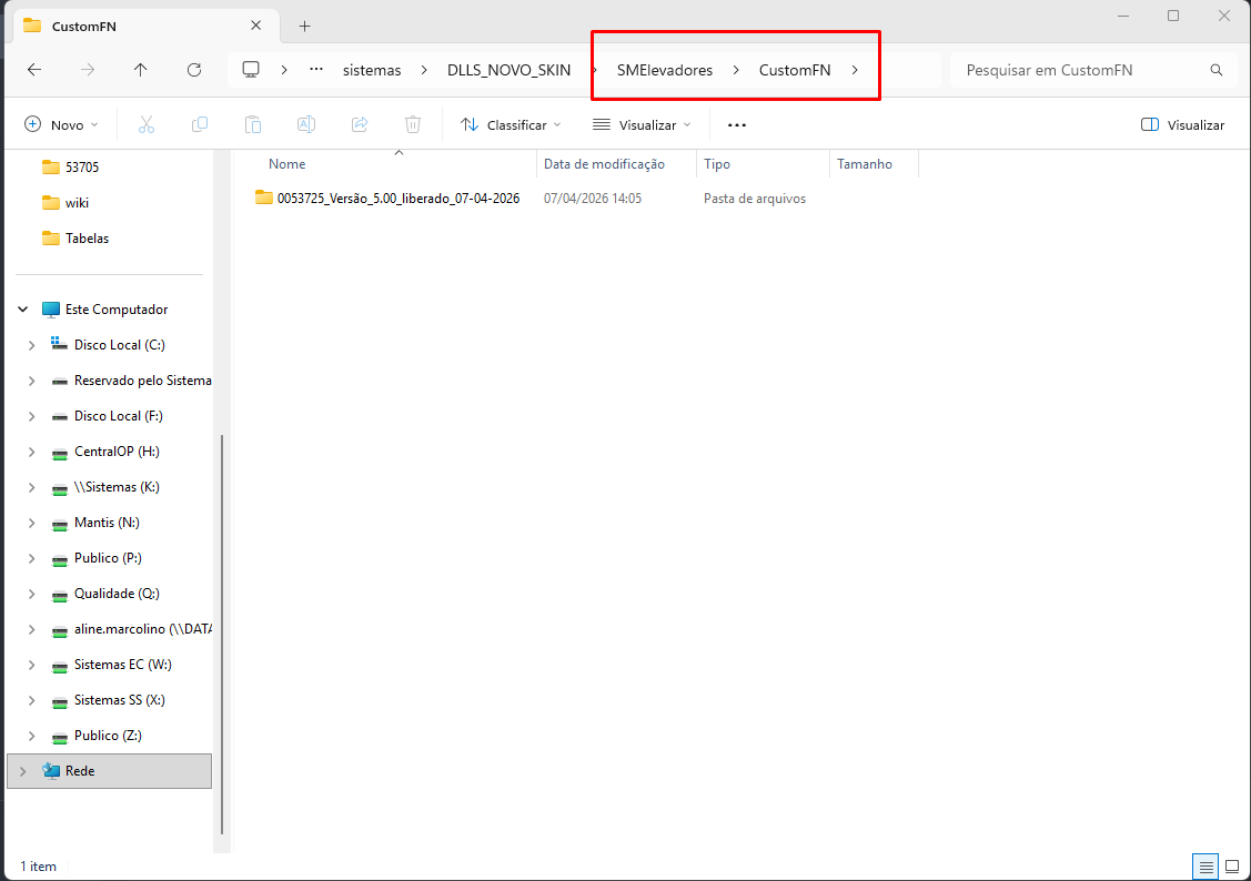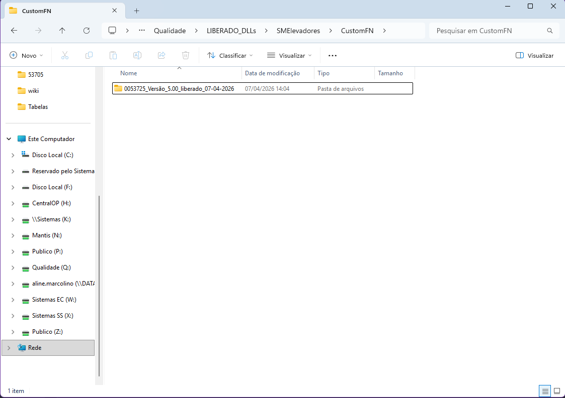 Criar uma pasta para cada Custom que será liberada, seguindo o padrão "Número do caso pai_Versão_Número da Versão_liberado_data da liberação", conforme exemplo: "0053725_Versão_5.00_liberado_07-04-2026"