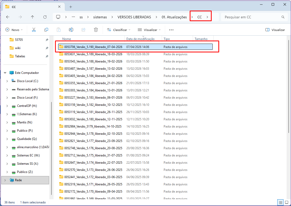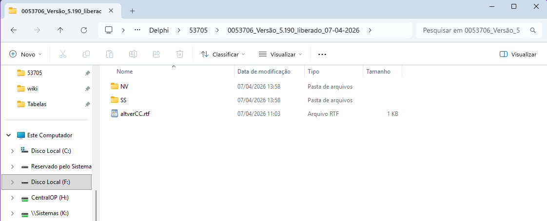 Será necessário disponibilizar essas pastas também no diretório \\ss\sistemas\VERSOES LIBERADAS\01. Atualizações + sigla do Módulo: