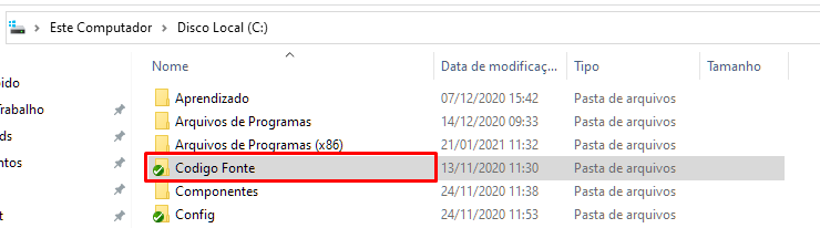 Seu C:\ ficará parecido com:
