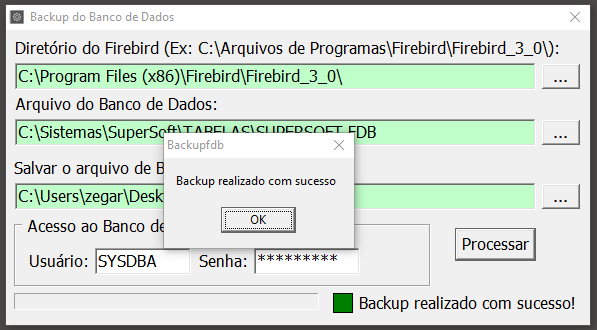 O BackupFDB não tem a mesma função da cópia de segurança disponível em cada módulo, pois não realiza a cópia por módulo ou por Abrev. Ao utilizar o BackupFDB, todas as informações do banco de dados serão copiadas em um arquivo com a extensão FBK.